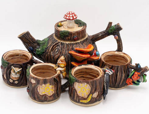 In contrast, my pottery practice, through SunDay Ceramics, embraces themes of growth and renewal. Inspired by the resilience of nature, I create functional pieces adorned with organic forms like caterpillars, flowers, and woodland creatures. These works offer a tactile and comforting counterpoint to the raw emotions explored in my other work. They symbolize the potential for healing and transformation, much like a seed breaking through the soil.